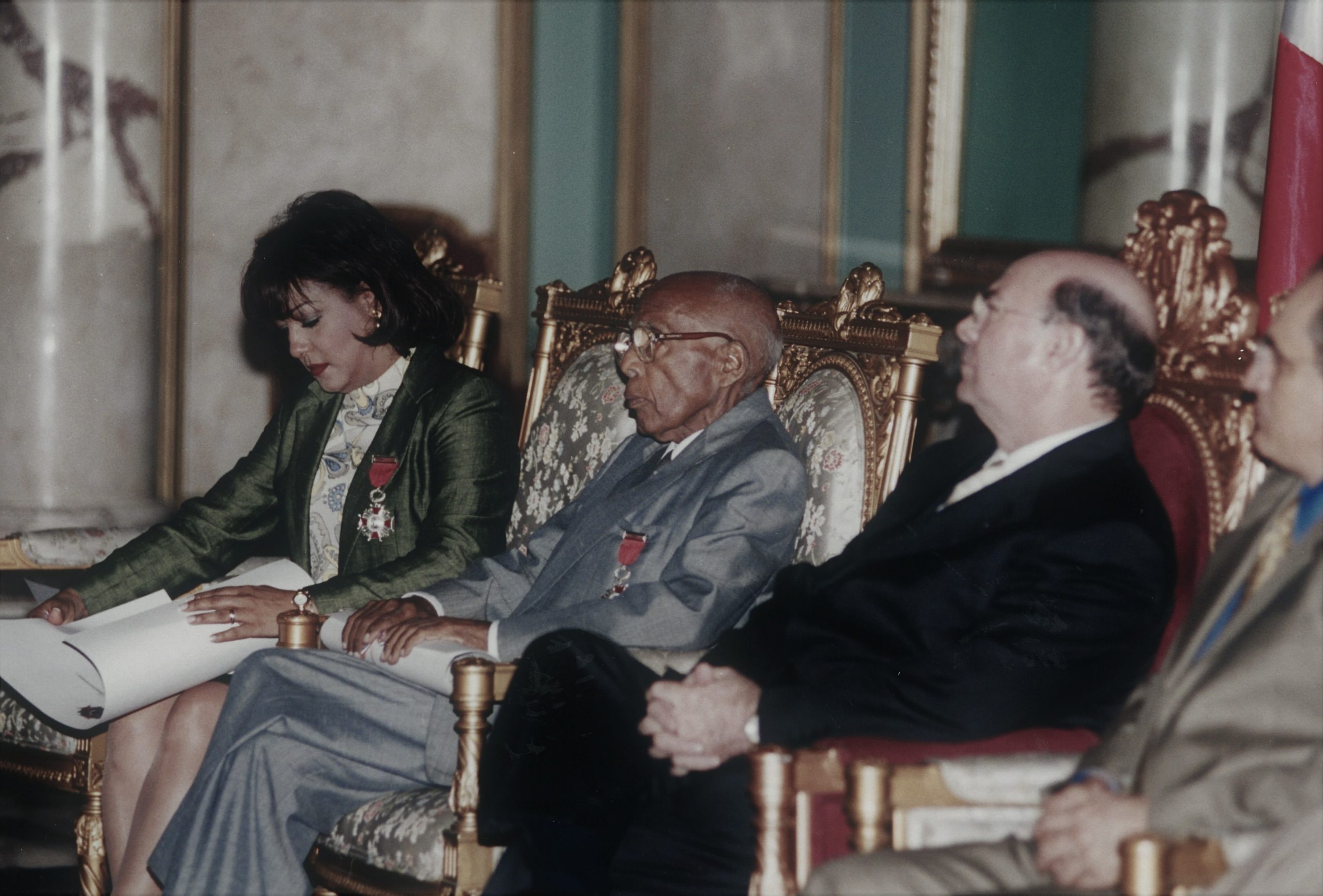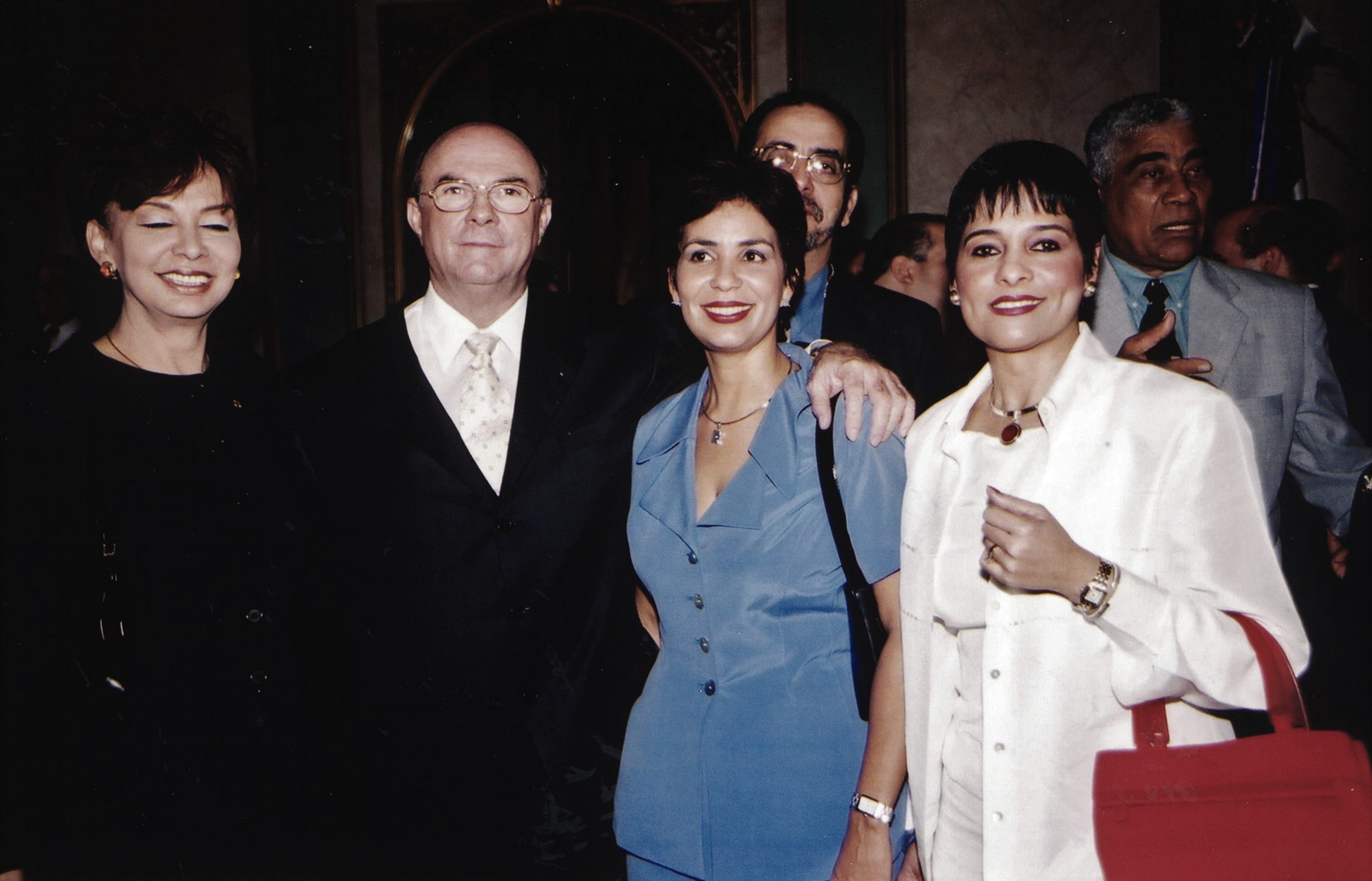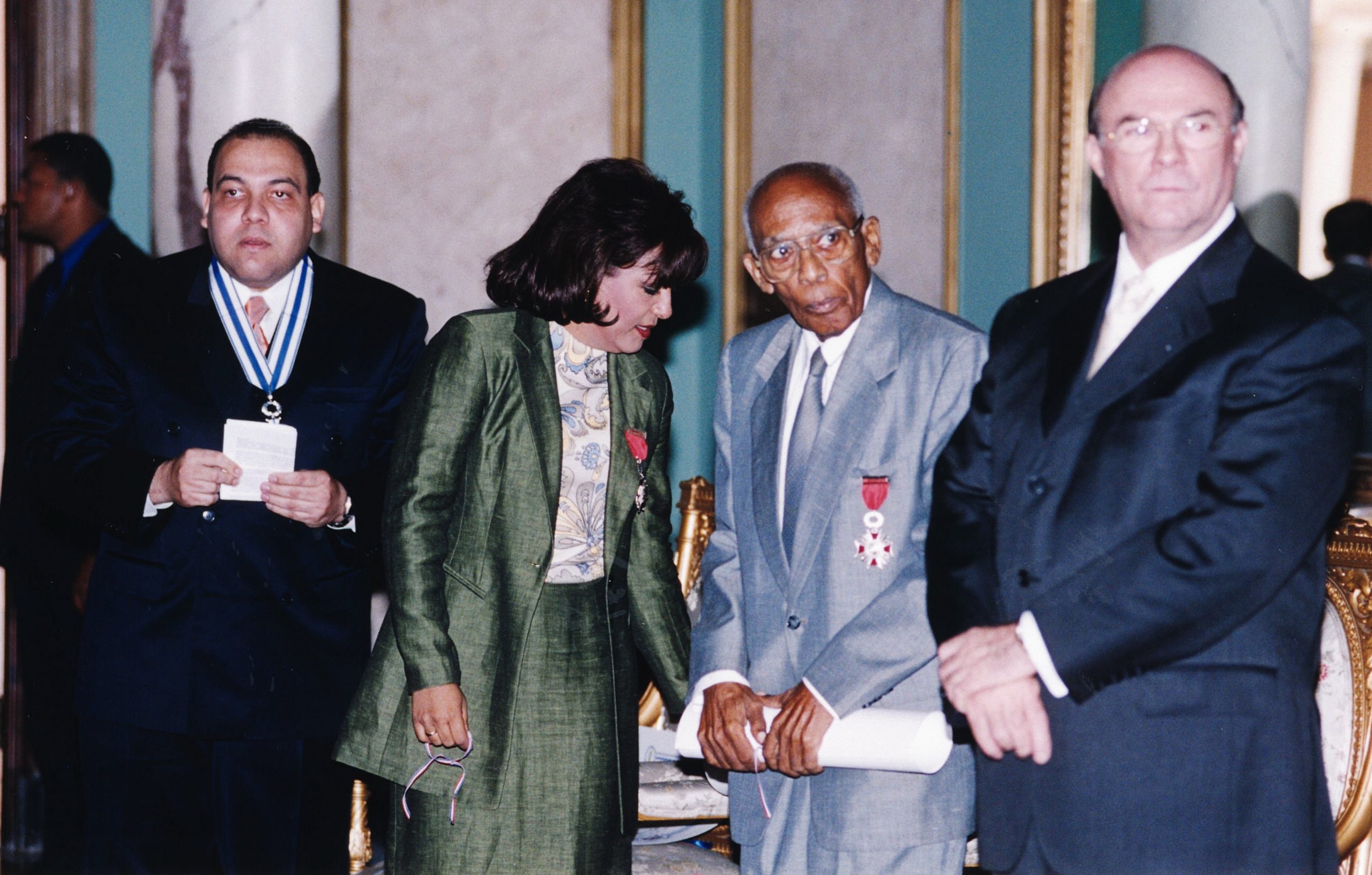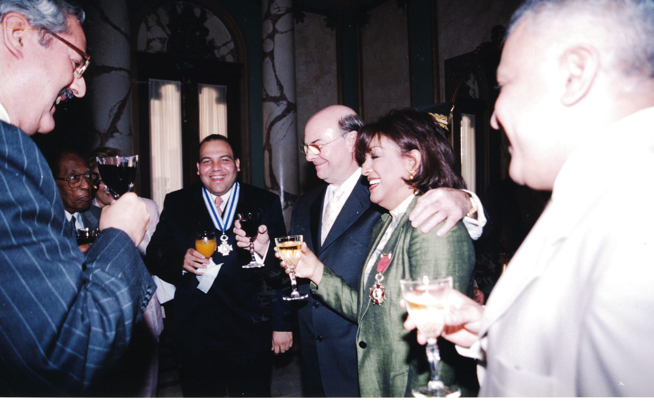 Momento de la condecoración: Miguel Reyes Sánchez, el Presidente Hipólito Mejía Y Carlos Guzmán, Jefe de Protocolo