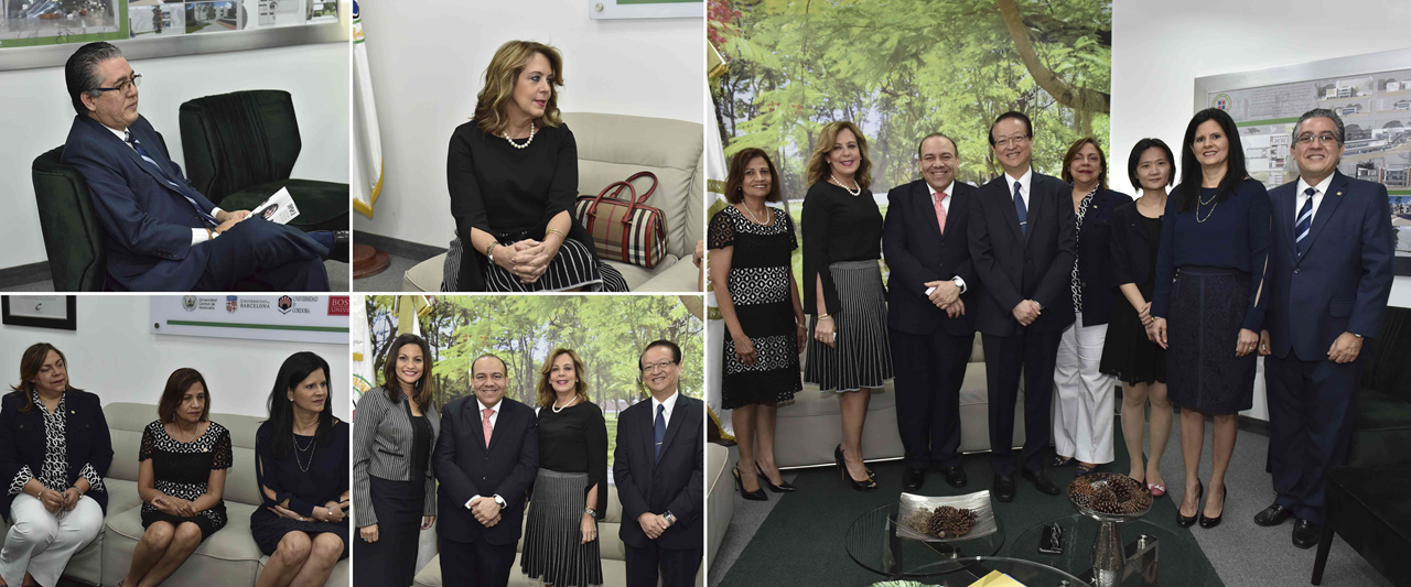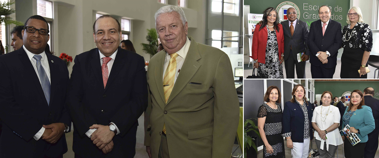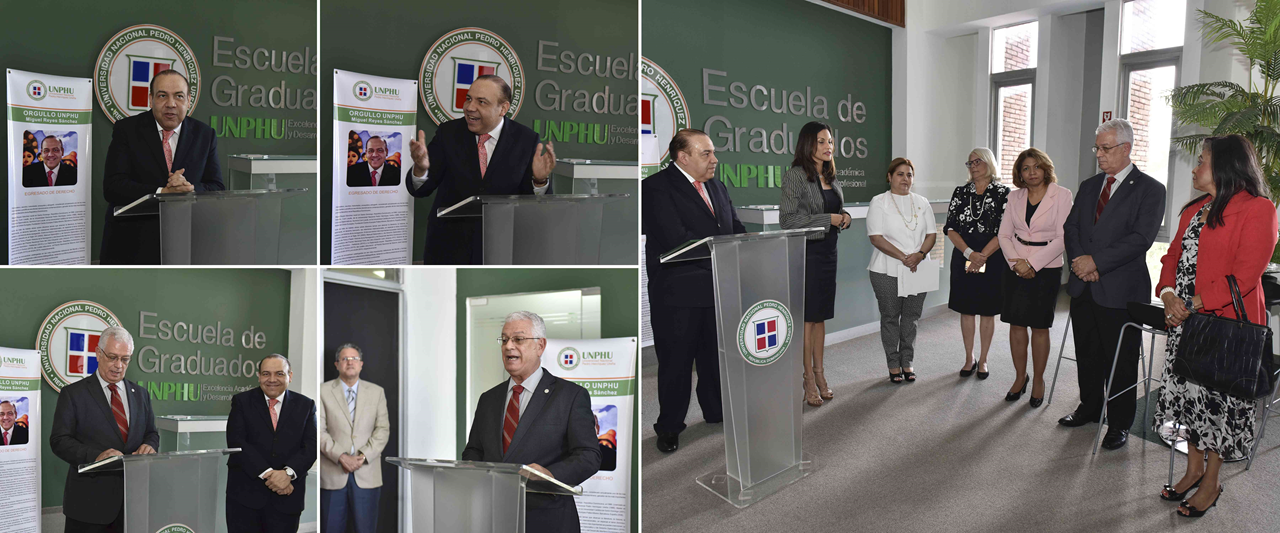 La vicerrectora de postgrados, Leonor Farray, Ellin Rodríguez, Directora de Egresados, Miguel Reyes Sánchez, y los vicerrectores de la UNPHU Josefina Pepín Ubrí y José Rafael Espaillat.