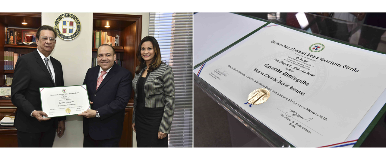 Acto de entrega del reconocimiento como “Egresado Distinguido” de la Universidad Nacional Pedro Henríquez Ureña (UNPHU).